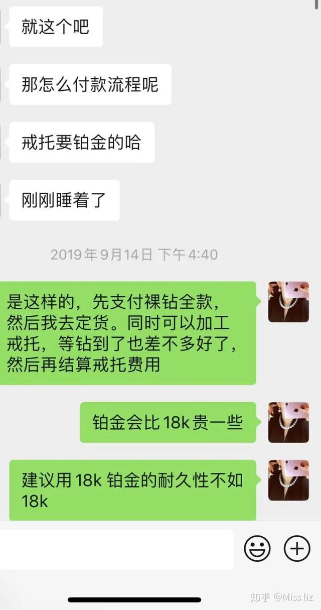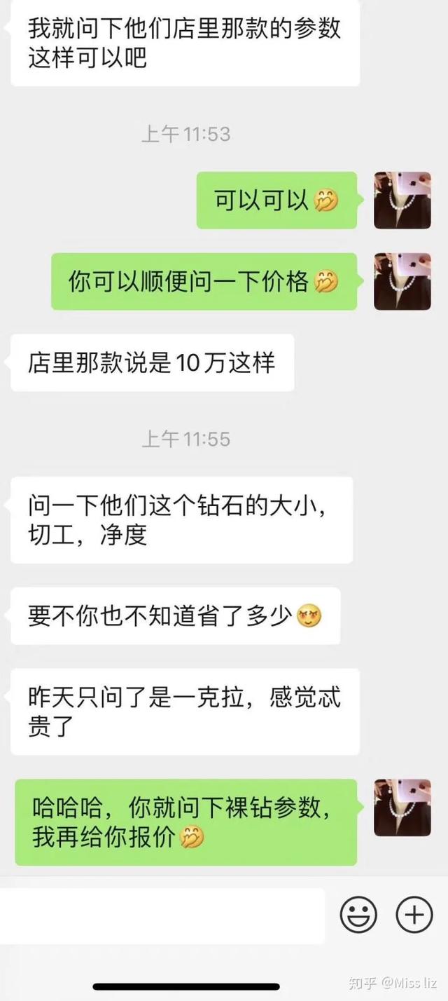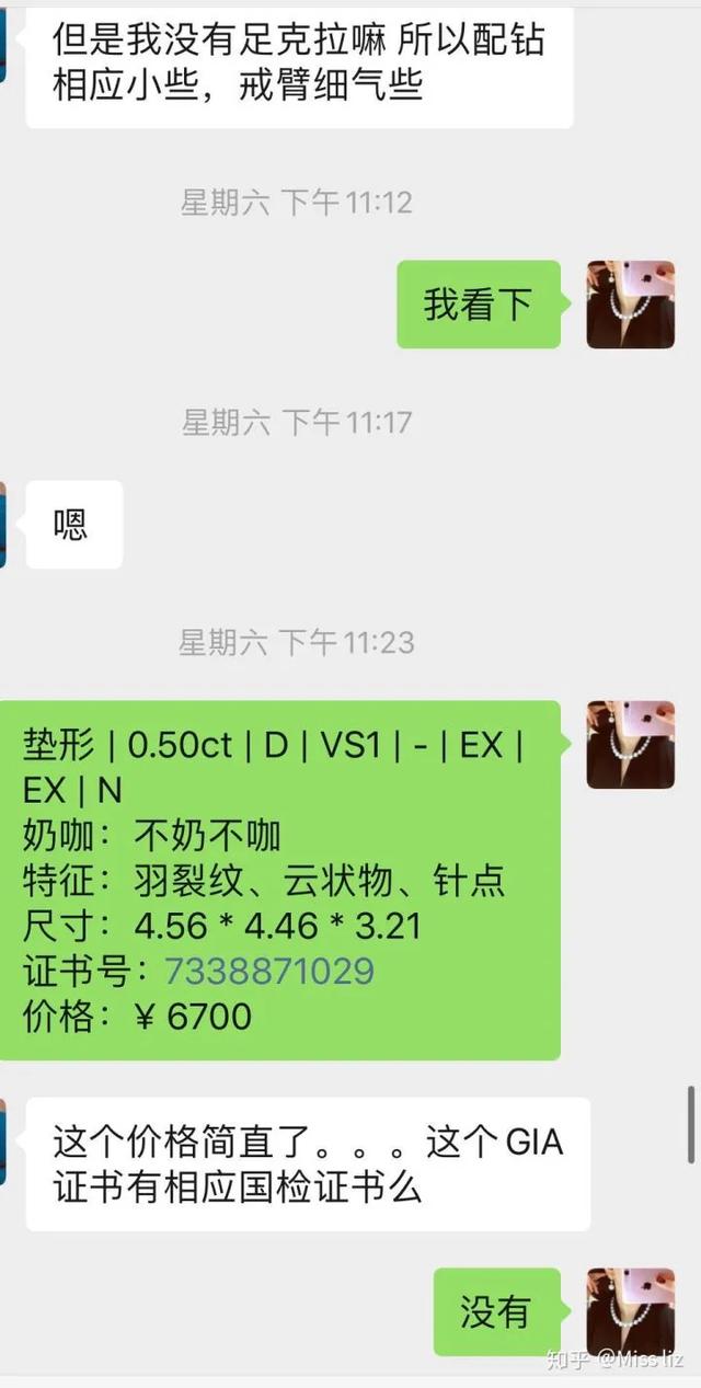 最后再来一个聊天记录吧,裸钻加上简单的戒托,也就是周六福的对折价格