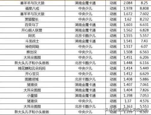 如今有了腾讯动漫和B站C站这些渠道,大家爱也都放弃了曾经的那些卫视,小编找到了一张动漫排行榜,如今还是他们两家独霸动漫界,其中收视率比较高的肯定有你童年的回忆。
